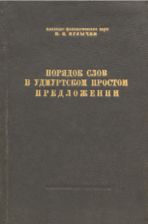 Порядок слов в удмуртском простом предложении / М. Н. Булычев, Науч.-исслед. ин-т истории, яз., лит. и фольклора при Совете министров УАССР ; под ред. Ф. Ф. Советкина ; предисл. Ф. Ф. Советкина. - Ижевск : Удмуртгосиздат, 1947. - 85, [2] с. ; 20,5 см. - Библиогр.: с. 84-86. - Режим доступа : http://elibrary.udsu.ru/xmlui/handle/123456789/820.