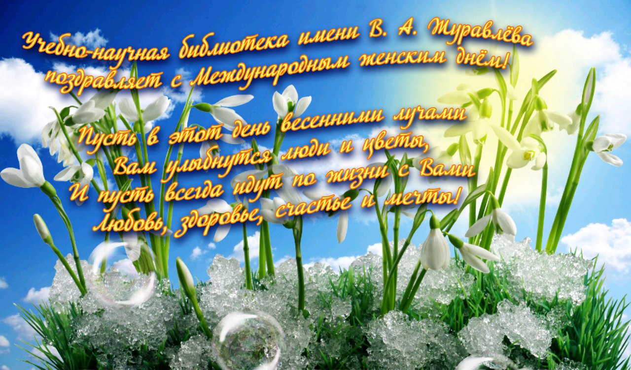 Поздравляем вас с Международным женским днём! Мы желаем вам счастья, семейного благополучия и приятных сюрпризов! Пусть каждый день будет наполнен улыбками, восхищением, заботой и радостью. Будьте счастливы и любимы!